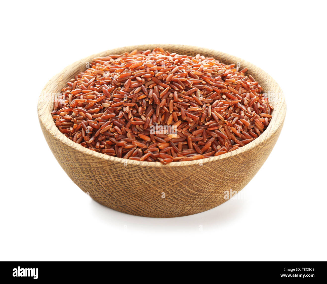 Wooden Bowl With Raw Red Rice On White Background Stock Photo Alamy